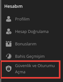 Hesabım sayfasına tıklayınız ve ardından sol sütunda bulunan "Güvenlik ve Oturum Açma" seçeneğini seçiniz.