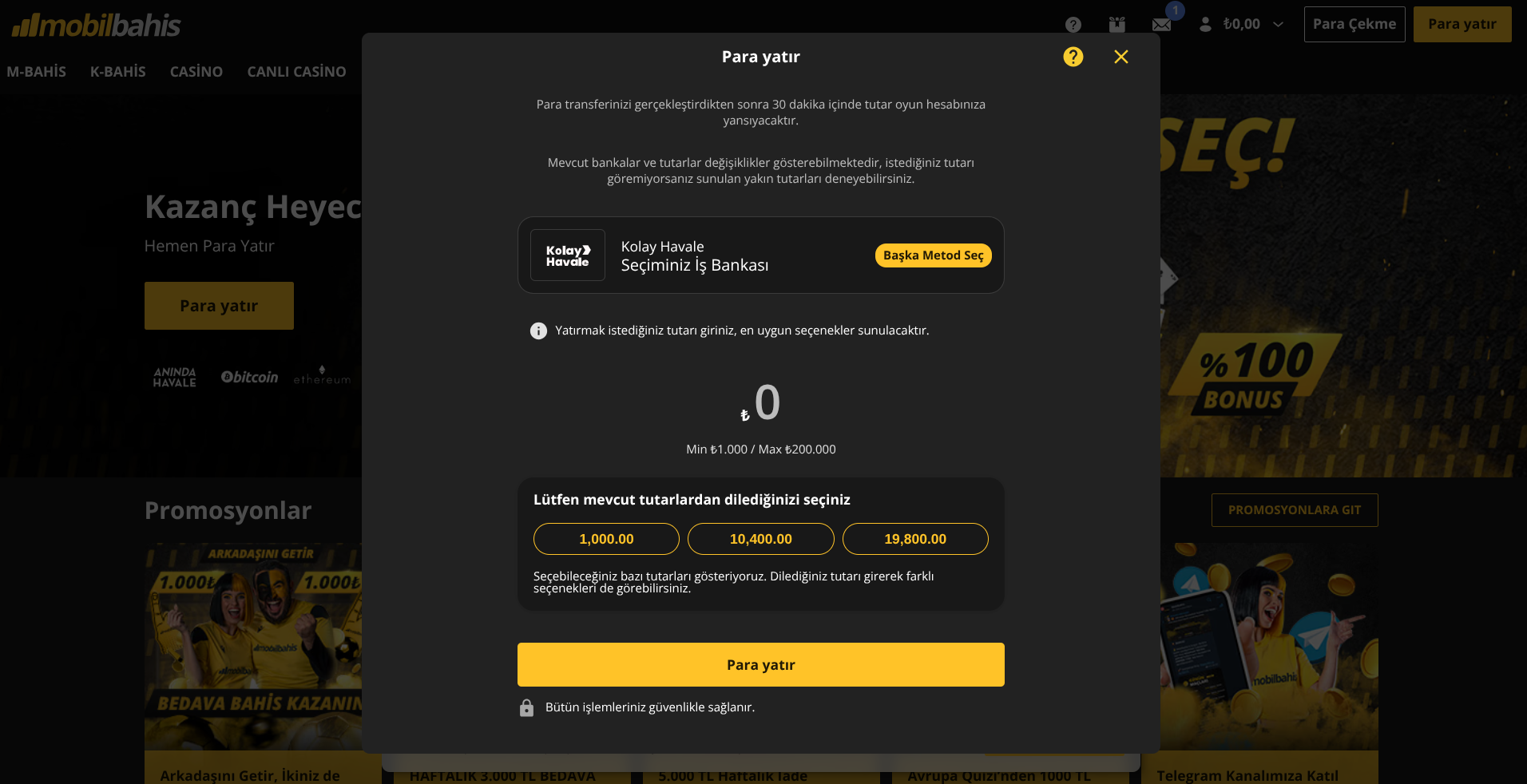 Bu durumda dilerseniz size sunulan yaklaşık tutar üzerinden yatırma işlemi yapabilir, diğer Havale yöntemlerindeki müsait tutarları kontrol edebilir veya daha sonra tekrar deneyebilirsiniz.